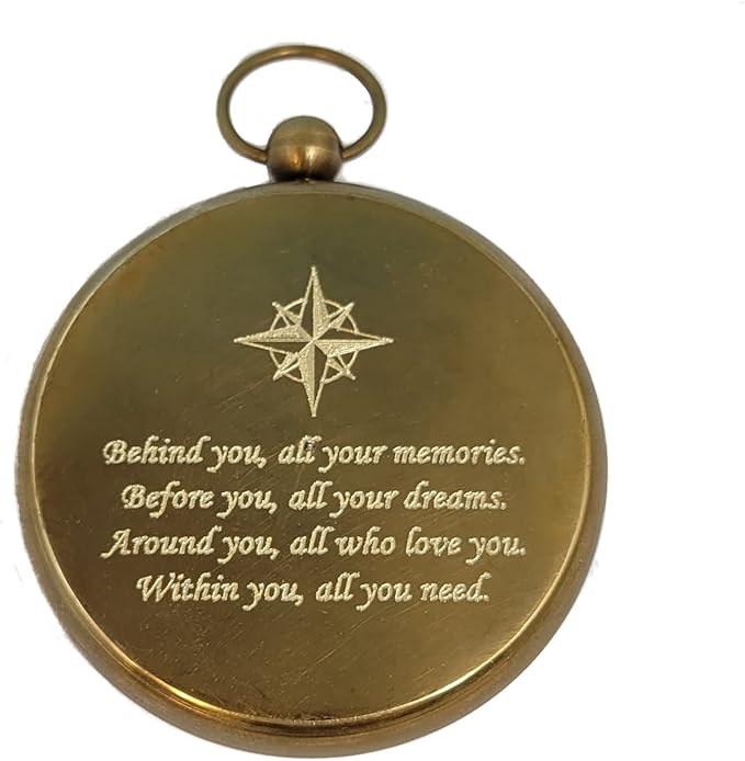 - BACK OF COMPASS ENGRAVED: *Compass Rose Artwork* Behind you, all your memories. Before you, all your dreams. Around you, all who love you. Within you, all you need.