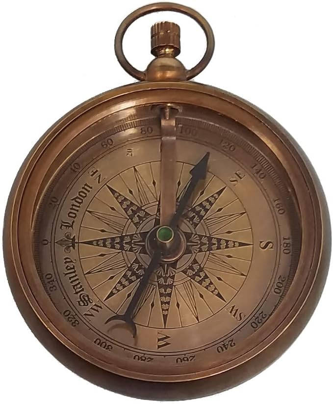- PRODUCT FEATURES: Heavy solid antique brass casing with beveled glass. The compass rose is graduated in degrees and has a standard surveyor's 0 - 90 degree scale from North and South