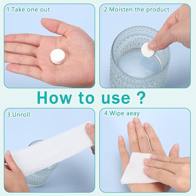 - 🍃 Easy to use: These compressed towel tablets are simple to use, you can add a small amount of water or makeup remover to open the towel, the magic travel towels absorb water quickly and easily unfold. Great for removing makeup, removing impurities, makeup and oil from the skin, while also removing dirt, sweat.