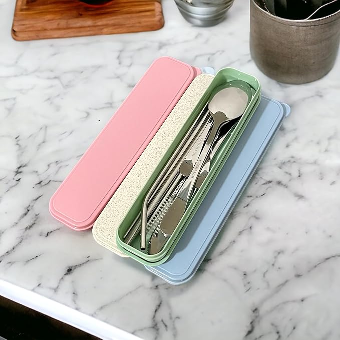 - PREMIUM QUALITY: Portable silverware are made from durable 18/8 food grade stainless steel for everyday use. Our utensil sets case are available in four colors: Blue, Pink, Green, and Beige.