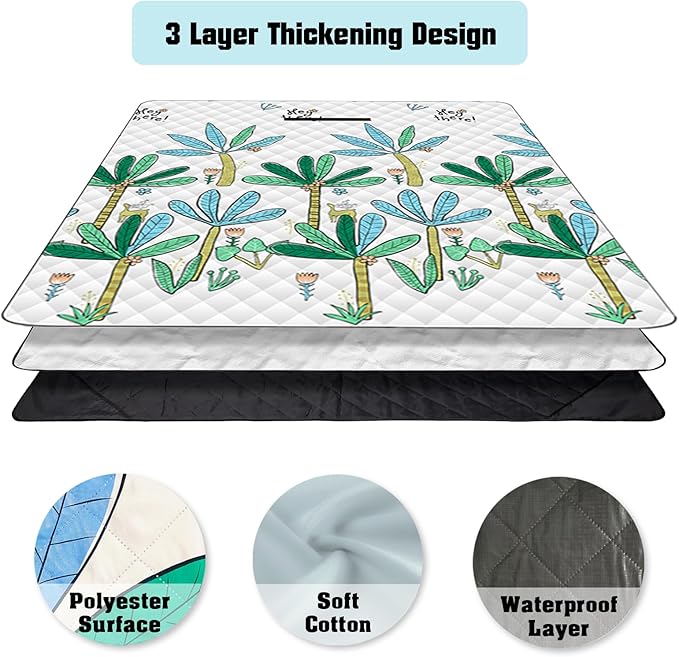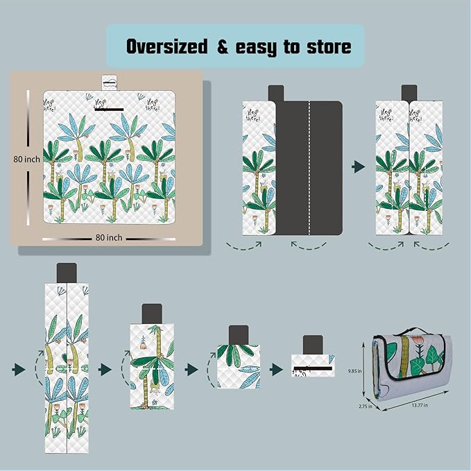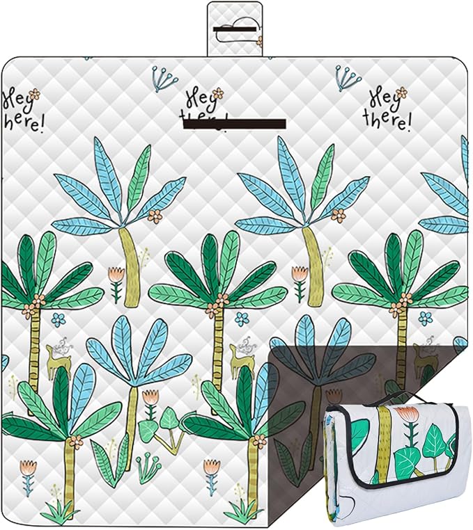 Picnic Blankets, 3-Layer Thicking Outdoor Camping Blanket, Extra Large 80"x 80" Outdoor Beach Blanket, Waterproof Lightweight Folding Portable Travel Blanket(Tropical Tree)