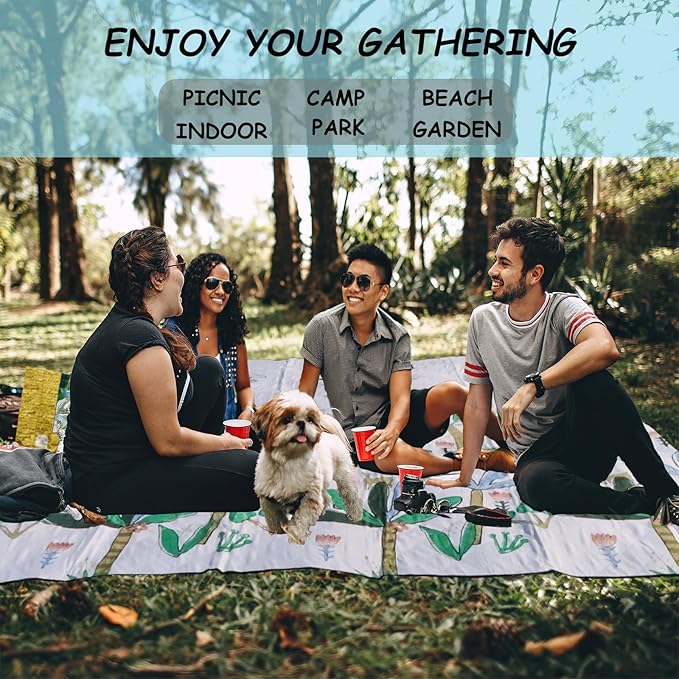- 【Multi Purpose】This waterproof picnic blanket is suitable for indoor and outdoor occasions, such as parks, beaches, camping, travel, etc. It can also be used for indoor activities for children/pets, as a game pad, pet pad, to meet various scene needs, and is also the perfect gift for family or friends.