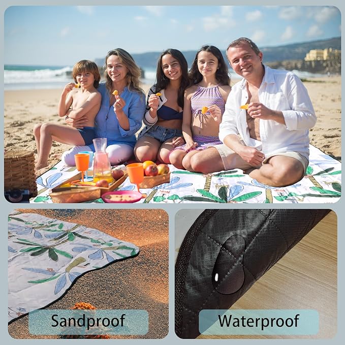 - 【Oversize & Portable】This three-layer waterproof and sand proof picnic mat/beach mat, with a unfolded size of 80*80 inches, can accommodate 4-6 people, is spacious and comfortable, and can accommodate food, tableware, daily necessities. It is very suitable for picnics, beach parties, camping, and more. After folding, the size is 9.8*13.7 inches, which is very portable and does not take up too much space.