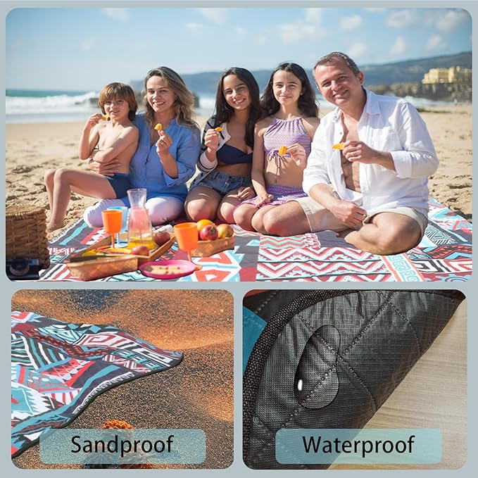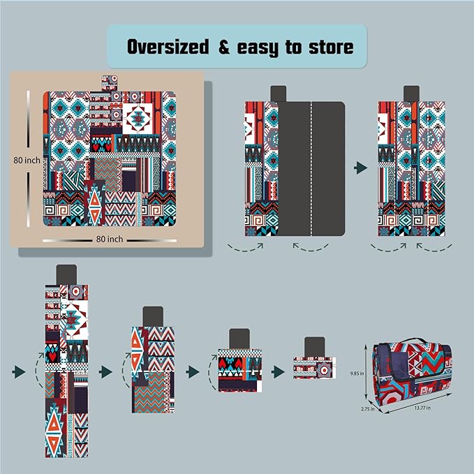 - 【Oversize & Portable】This three-layer waterproof and sand proof picnic mat/beach mat, with a unfolded size of 80*80 inches, can accommodate 4-6 people, is spacious and comfortable, and can accommodate food, tableware, daily necessities. It is very suitable for picnics, beach parties, camping, and more. After folding, the size is 9.8*13.7 inches, which is very portable and does not take up too much space.