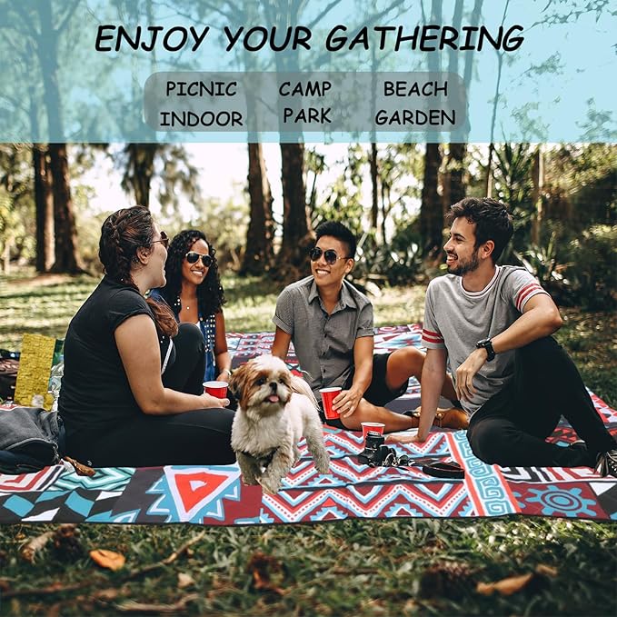 - 【Multi Purpose】This waterproof picnic blanket is suitable for indoor and outdoor occasions, such as parks, beaches, camping, travel, etc. It can also be used for indoor activities for children/pets, as a game pad, pet pad, to meet various scene needs, and is also the perfect gift for family or friends.