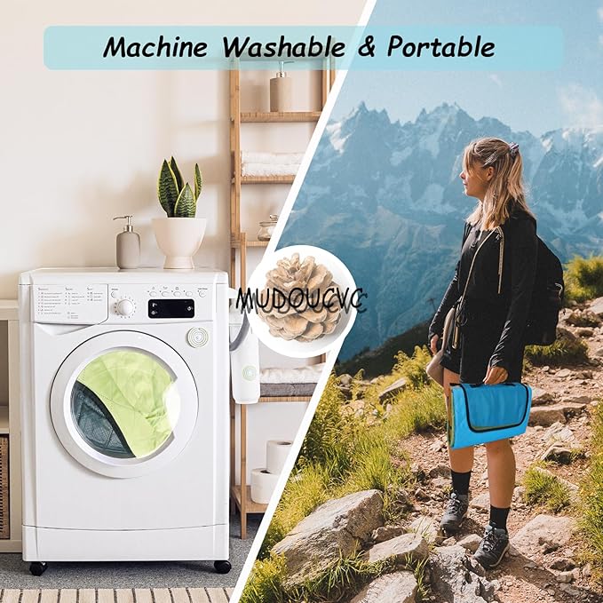 - 【Easy to Clean】This beach mat, due to its waterproof treatment at the top and bottom, is sewn seamlessly to further improve its moisture resistance and better isolate grass or sand. When the beach blanket is stained with sand and dirt, it can be removed by gently shaking and wiping, and can also be placed in the washing machine for cleaning, making it very easy to clean.