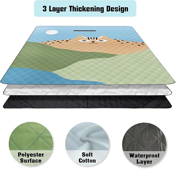 - 【Multi Purpose】This waterproof picnic blanket is suitable for indoor and outdoor occasions, such as parks, beaches, camping, travel, etc. It can also be used for indoor activities for children/pets, as a game pad, pet pad, to meet various scene needs, and is also the perfect gift for family or friends.