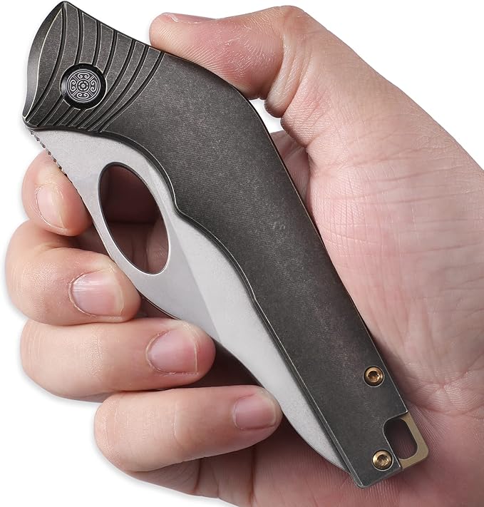 - Solid titanium handle with frame lock mechanism for safety use. excellent rust resistance and toughness, light weight. Perfect for daily carrying.