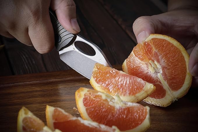 - Amuse Knife made of M390 steel blade,58-61HRC high hardness and wear resistance,sharp cutting. Stonewashed finish.