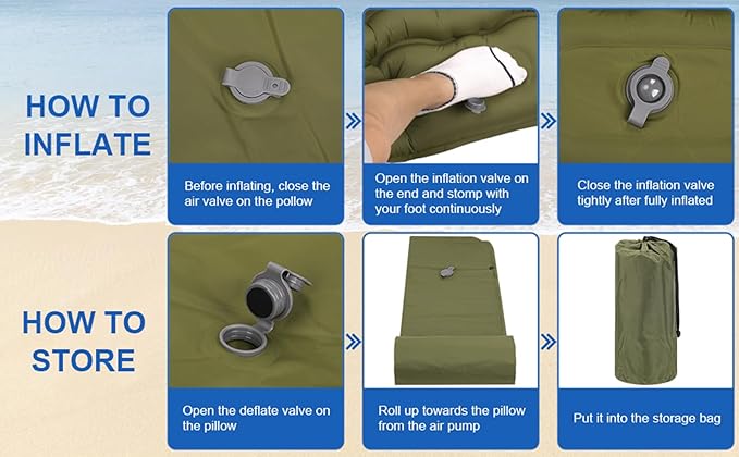- 【Foot press to inflate】Upgraded built-in foot pump sleeping pad, no more inflating by mouth or carrying a pump, just stomp for 30-60 seconds.