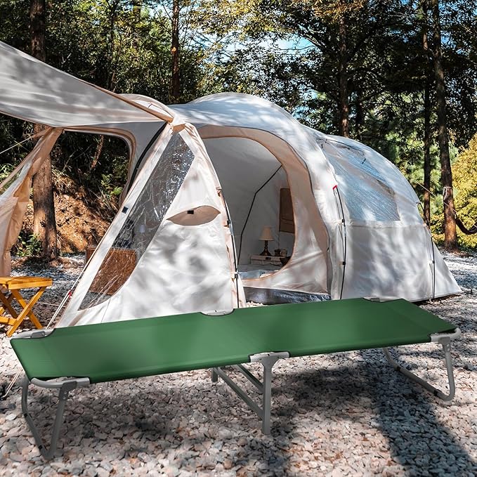 - Durable Lightweight Design - Experience the perfect blend of durability and lightweight design with our camping cot's metal frame and 600D Oxford fabric. This ensures it will withstand the elements and last for years of adventure.