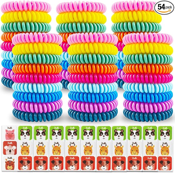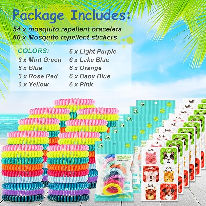 54 Pack Mosquito Repellent Bracelets, DEET-Free Insect & Bug Repellent Wrist Bands with 60 Pack Smile Mosquito Patches for Kids & Adults Outdoor Camping Fishing Traveling