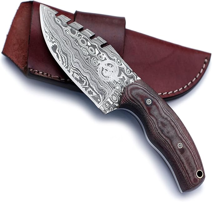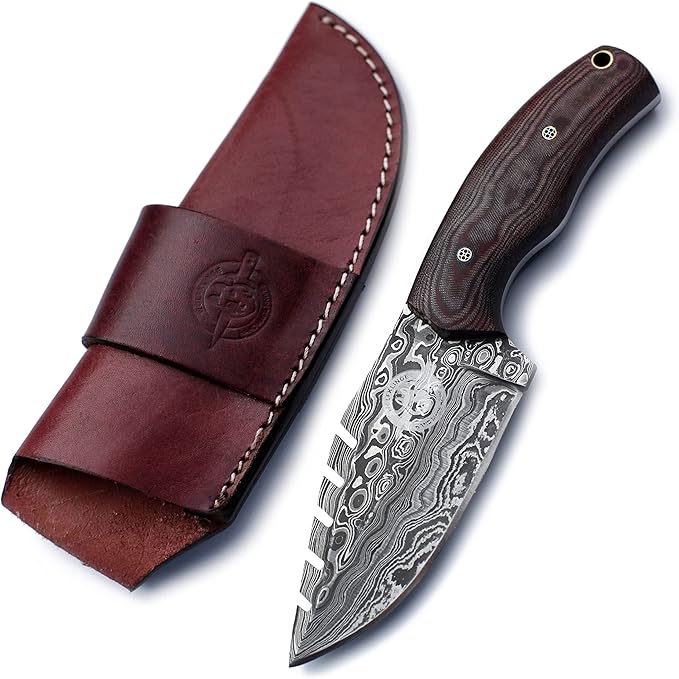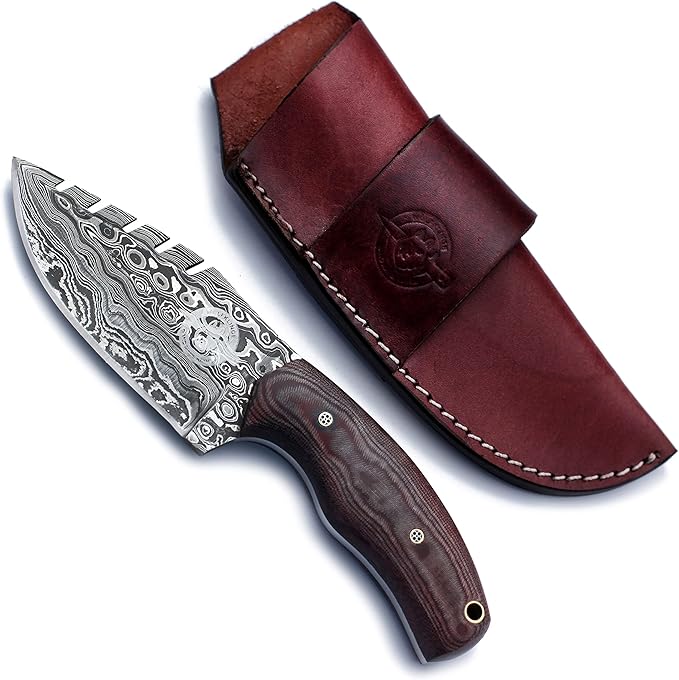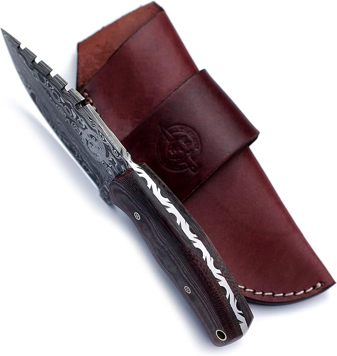 - 🎁:Sheath Included: Right for Vertical carry and left for the OWB outside the waist band .Each knife purchase includes a premium vintage brown leather sheath, meticulously hand-carved, tooled, and hand-dyed. It features welted construction stitched with nylon thread, ensuring secure and stylish carry.Sheath Included with Every Knife Purchase.