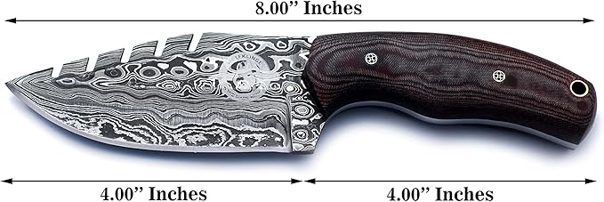 - 🗡:KNIFE DIMENSIONS: It is best as a Hunting, Survival, Camping, Skinning and Tracking Knife a complete Package of an Outdoor Adventures. 8 inch Total Length, 4 inches Blade and 4 inches Han