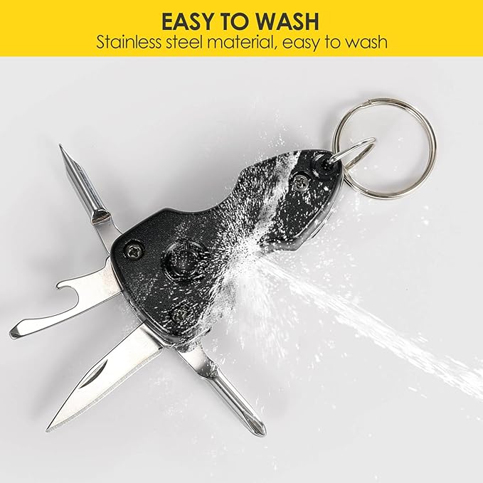 • 【5 in 1 Multi-function Tool】2 kinds of screwdriver, led keychain, key chain, bottle opener, cutting apply to outdoor activities, outdoor survival, furniture maintenance, open the package to open the bottle.