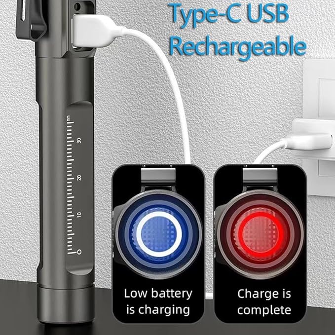- 【USB Rechargeable 】This torch supports USB C(Type C) charging function, type C USB charging port with reversible, can be inserted into the power supply without regard to the front and back of the plug, which makes charging more convenient and fast