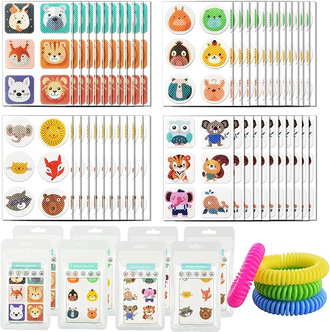 - 480Pcs Mosquito Stickers & 4Pack Bands : Rich stickers and bracelets provide all-round protection, let your family and kids spend a holiday free from mosquito interference. With their compact and portable design, these stickers can be easily applied to any surface. Simply peel off the protective backing and stick them onto your clothing, bags, strollers, hats, or any surface you desire.