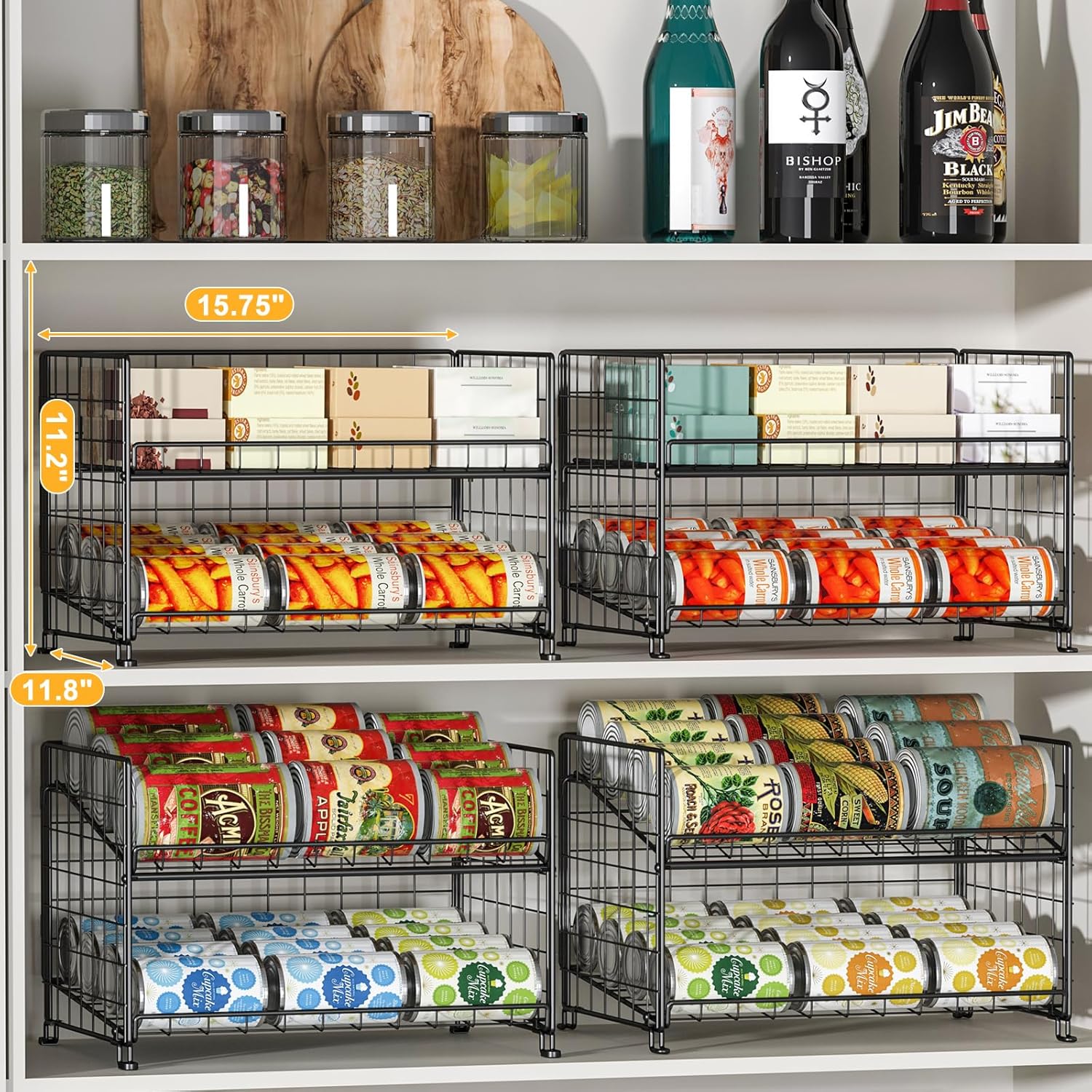 - 【LARGE CAPACITY】The large capacity of the 4-tier pantry can organizer more cans, keeping your kitchen cabinets, pantry, and countertops clean and tidy. Meanwhile, the can storage dispenser can be adjusted, you can adjust the interval and angle according to the actual situation, which can perfectly accommodate different size cans or other food to meet all your needs!