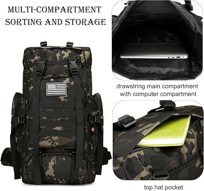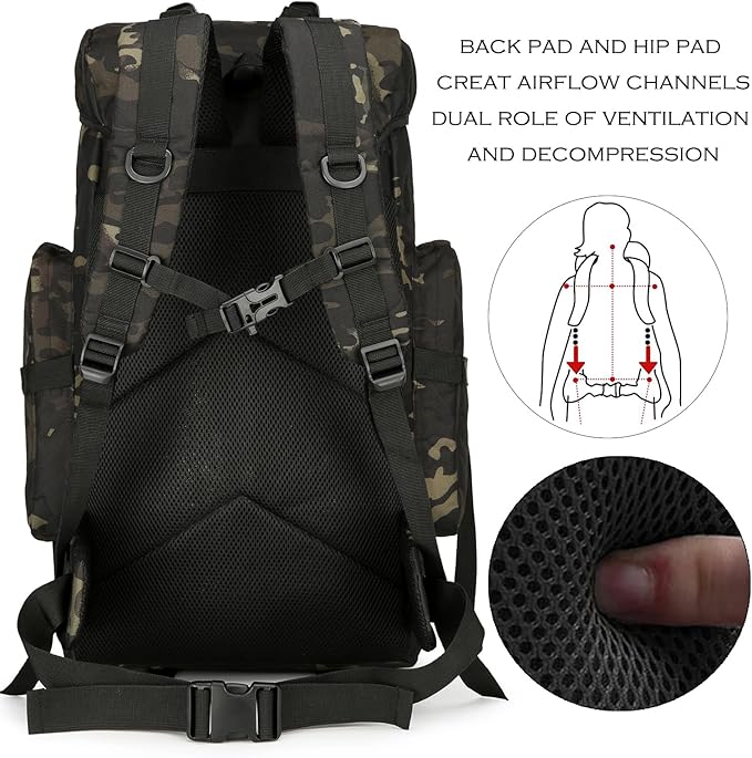 - 【Outdoor backpack】Military assault backpack comes with multi-extra load system, all load straps have been lengthened for bundle tents and hammocks, molle system can mount other items or small bags. Increase external capacity and functionalitya great hiking camping backpack.