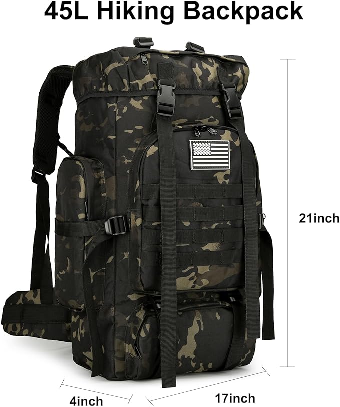 45L Hiking Backpack Camping Rucksack Molle Military Backpack for Outdoor Traveling (Black CP)