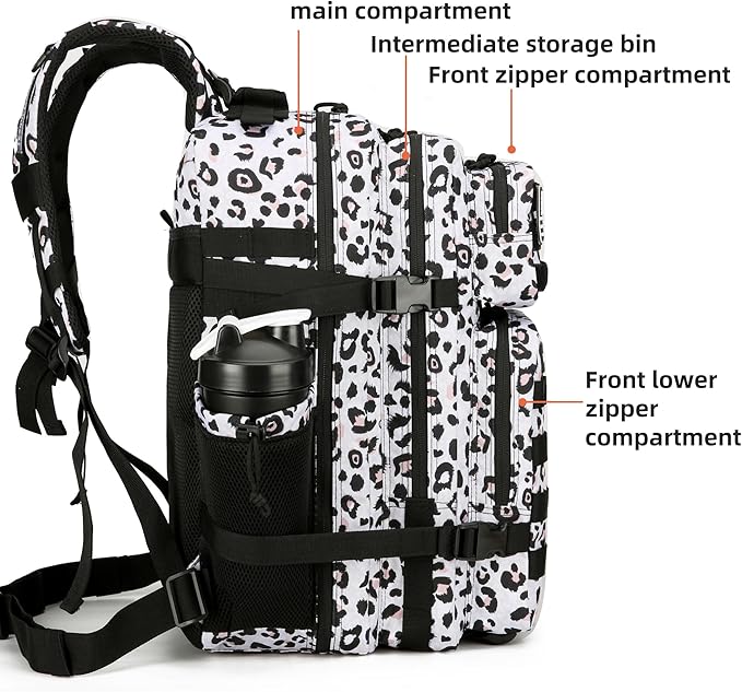 - This tactical backpack features multiple compartments and zip closure pockets, including internal zip pockets and mesh pockets. It allows you to put almost all the necessities in it. It's ideal for outdoor and military enthusiasts, as well as fashion lovers!