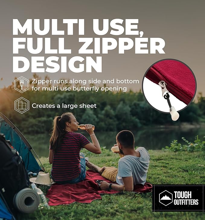 - SLEEP LIKE A BABY ON THE ROAD: Say goodbye to scratchy hotel sheets and hello to your new BFF (best fluffy friend) - our XL sleeping bag liner! Soft, cozy, and breathable, our 180 gsm fleece fabric adult camping sleeping bag liners are one of the most important camping essentials and will have you snoozing comfortably no matter where your adventures take you.