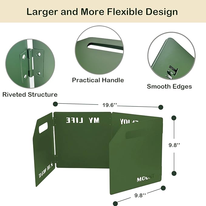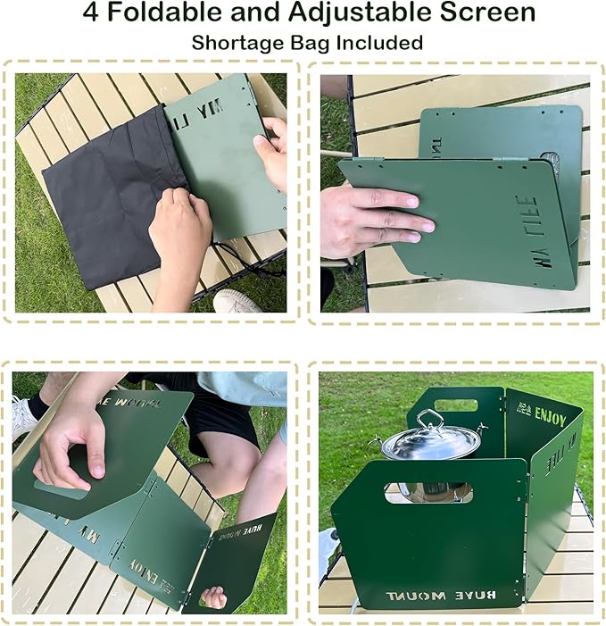 - Foldable and Portable: The windscreen is designed to be foldable, making it extremely compact and easy to carry. It conveniently fits into your backpack or camping gear, taking up minimal space while ensuring you have wind protection whenever you need it.