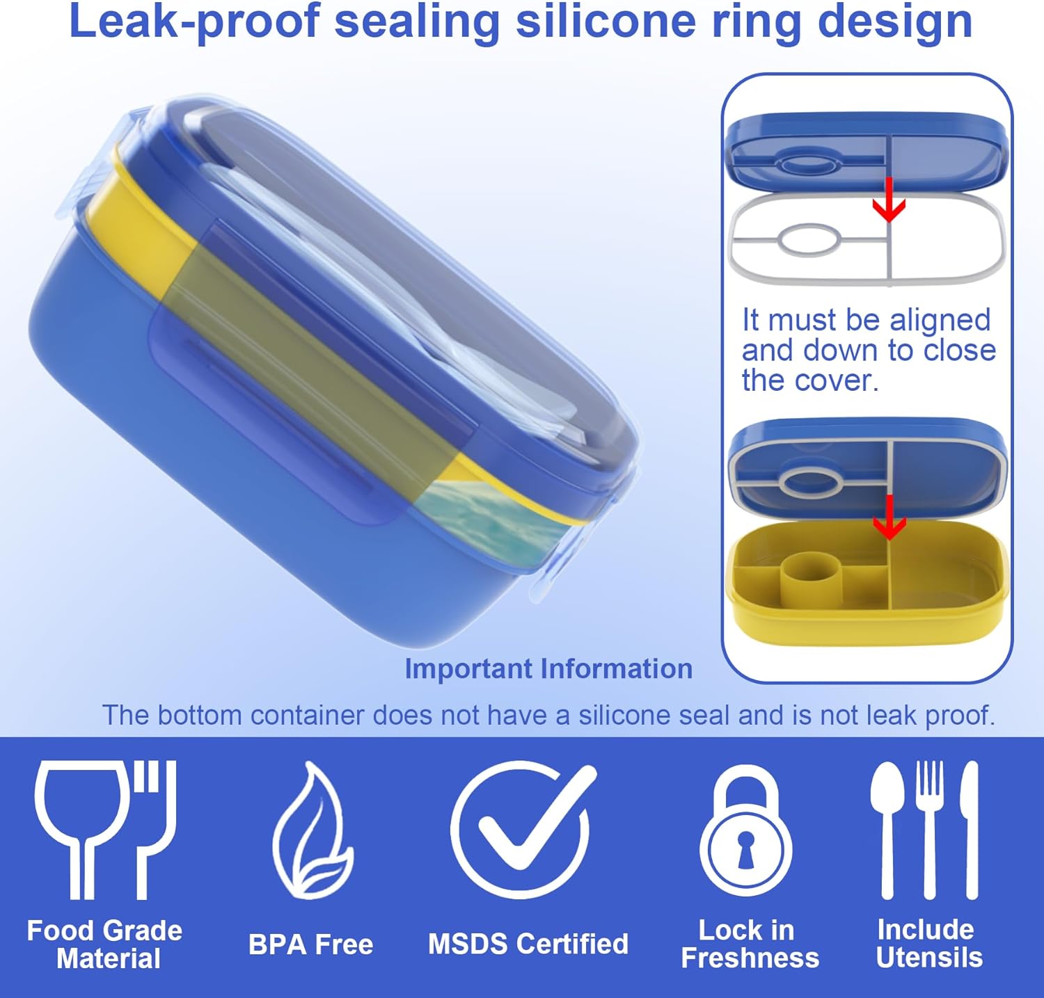 - Leak-Proof and Easy to Clean: Equipped with high-quality silicone sealing components and 4 reinforced locking clips, our lunch box guarantees leak-proof performance, preventing any liquid leaks during travel. Cleaning is a breeze, ensuring convenience for your busy lifestyle