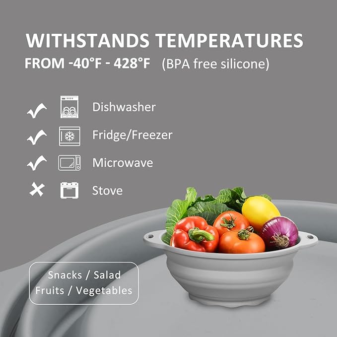 - Food-grade Material: Jovilife collapsible bowl is made of food-grade silicone and is environmentally friendly. Dishwasher safe and can be put in the microwave