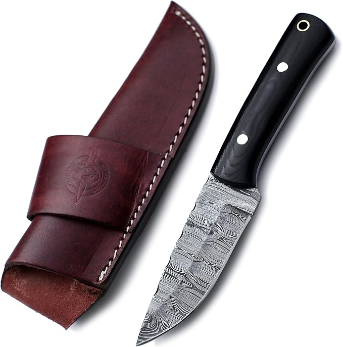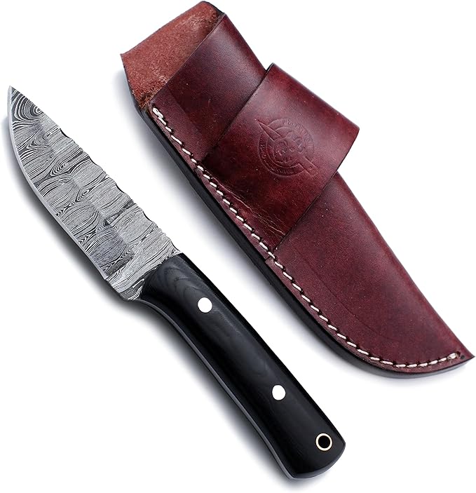 Handmade Damascus Steel Knife for Hunting,Survival,Camping,Bushcraft,and Fishing Fixed Blade with Drop Point Full Tang Micarta Handle,-with Cowhide-Leather Sheath - WKD-790