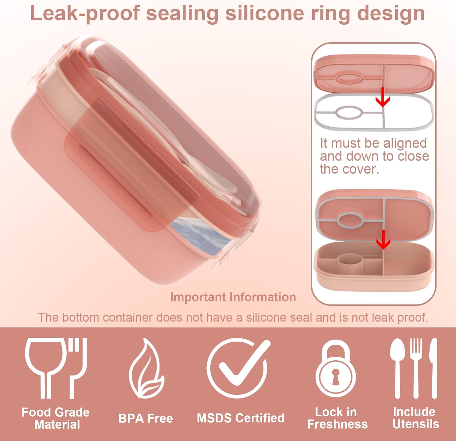 - Leak-Proof and Easy to Clean: Equipped with high-quality silicone sealing components and 4 reinforced locking clips, our bento box guarantees leak-proof performance, preventing any liquid leaks during travel. Cleaning is a breeze, ensuring convenience for your busy lifestyle