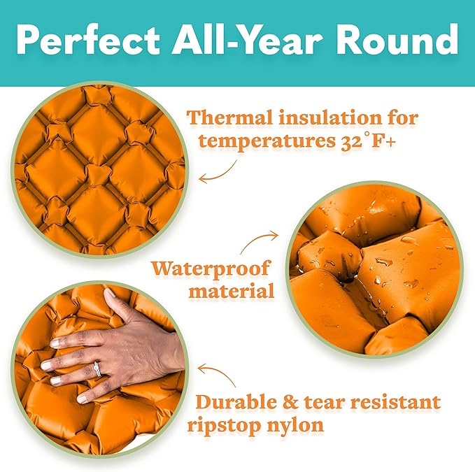 - TEAR-RESISTANT WITH HEAVY-DUTY RIPSTOP NYLON FABRIC - These lightweight sleeping pads are made of super strong, waterproof, camping-grade ripstop nylon fabric. With 20 denier thickness, these sleeping pads are designed to last a lifetime in the most severe conditions.