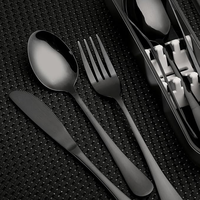 - Health and environmental protection:say no to the single-use plastic flatware. environmentally-friendly way to use this reusable utensils with case, And the waterproof lining inside the travel cutlery sets is made of aluminum foil which is easy to clean. eco-friendly & easy to Clean.