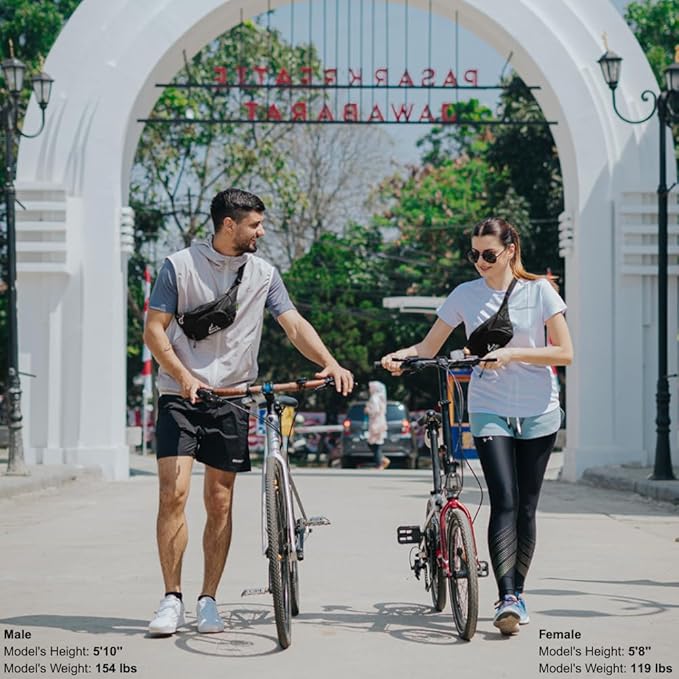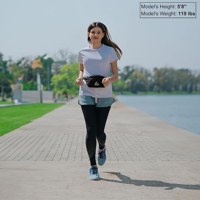 - [LIGHTWEIGHT AND COMFORTABLE] Weighing just 0.22 pounds, this waist bag is not only ultra-light but also comfortable to wear, thanks to its adjustable strap that fits up to 51". With dimensions of 13.8" L x 2.8" W x 5.5" H, this compact yet spacious mini crossbody bag is perfect for carrying your essentials, such as snacks, a 280ml water bottle, keys, and a phone.