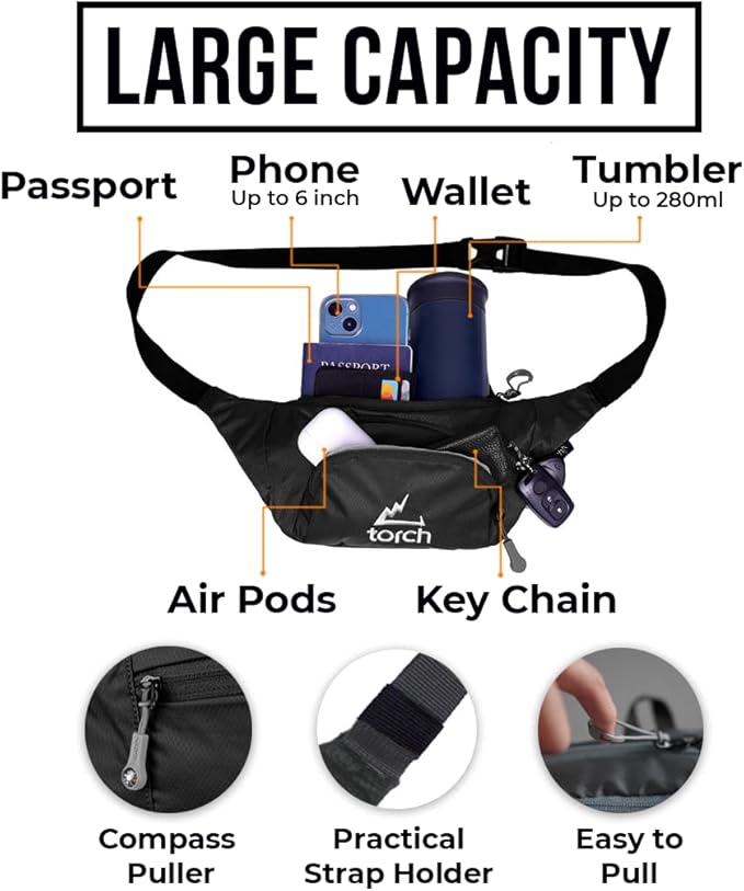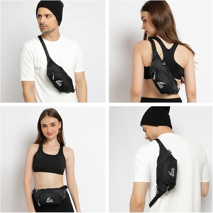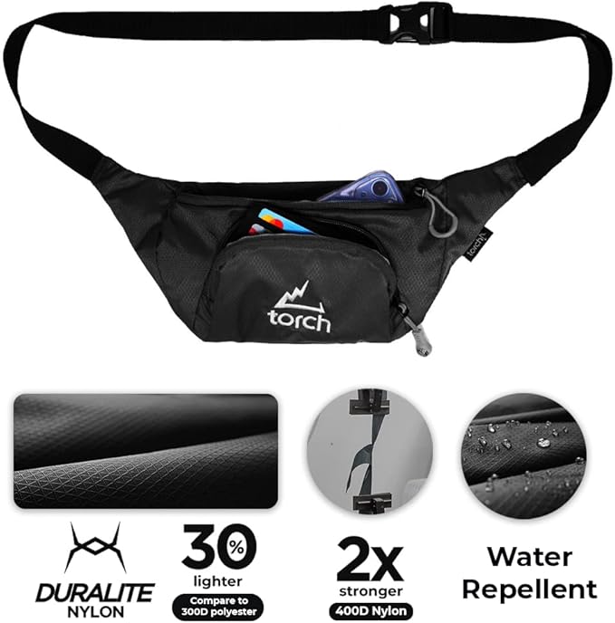 TORCH Mens Fanny Pack - Hip Pack For Men Women with Compass Survival, Small Crossbody Fanny Packs for Walking, Biking, Outdoor, Workout - Vallejo (Black)