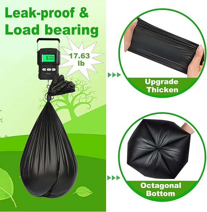 - 【Durable & Leak-Proof】The bucket toilet liner bags are thickened design, octagonal bottom, super tough, durable. Our these rv toilet bags for camping potty have been tested to ensure thick enough to handle 11-15LB of waste without breaking or leaking. The portable toilet plastic bags are 8 gallon/30 liters Capacity, with an expanded size of 22.83 x 25.6 inches.