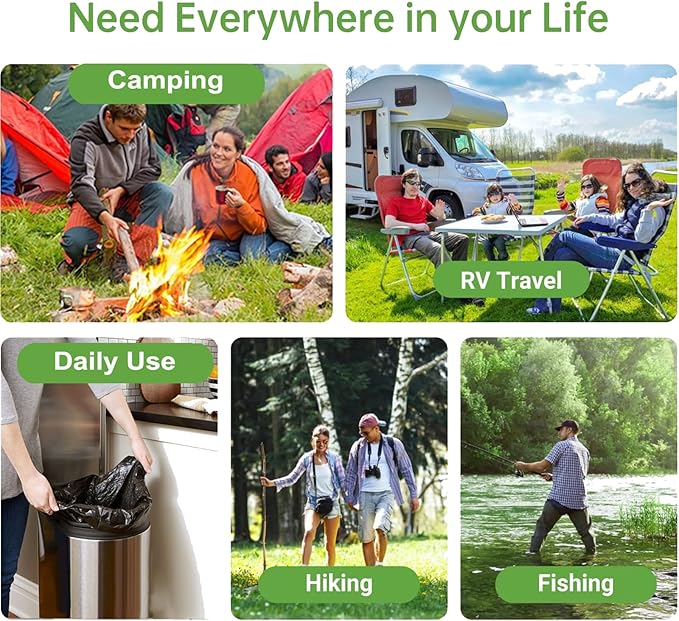 - 【The Perfect Fit】Our porta potty bags for portable toilet works with most 5 gallon or 8 gallon portable toilet, camping toilet, portable potty for adults, bucket toilet seat, folding toilet, boat toilet, rv toilet, travel car toilet, or as a daily trash can, etc. The disposable camping poop bags for people are perfect for camping and other activities.