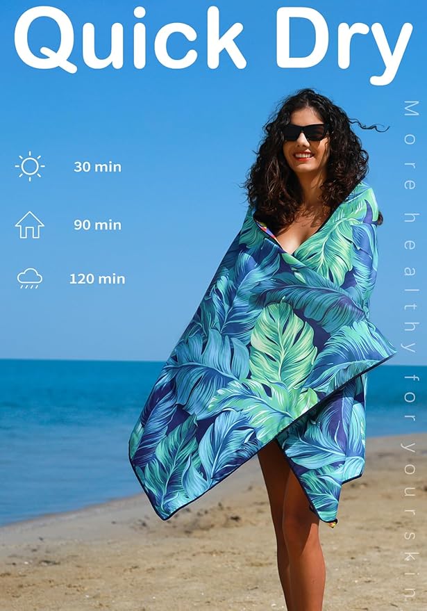 - SAND FREE AND EXTRA LARGE: The microfiber beach towels are designed to repel sand, making them the ideal choice for a day at the beach. They are generously sized to provide ample coverage and prevent sand from getting on your skin or clothes, ensuring a comfortable and enjoyable experience