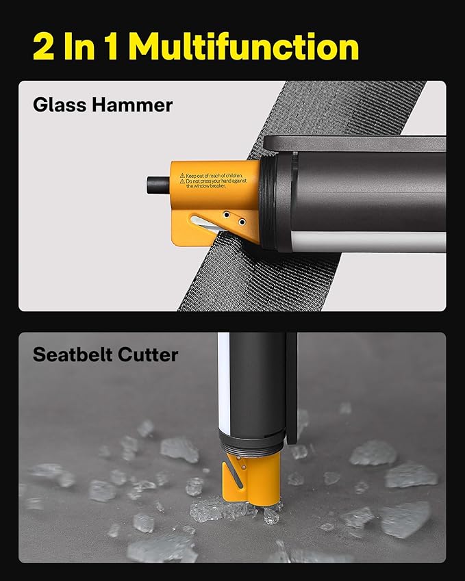 - 【SEATBELT CUTTER & WINDOW BREAKER】The HOTO emergency flashlight power is equipped with a safety belt cutting knife with an inverted buckle design, which is designed to prevent accidental cuts. The pop-up window breaker, the push-type structure, press firmly perpendicular to the glass window, and the hidden striker pops out, which is safer and labor-saving, keeping you safe from unintentional harm. IP54 water resistance protects against everyday splashes