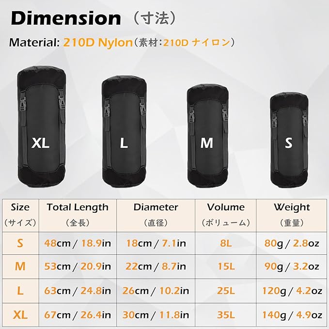 - ✅ MATERIAL - Made of high-quality Oxford, the compression stuff sack is tough and durable to last for years