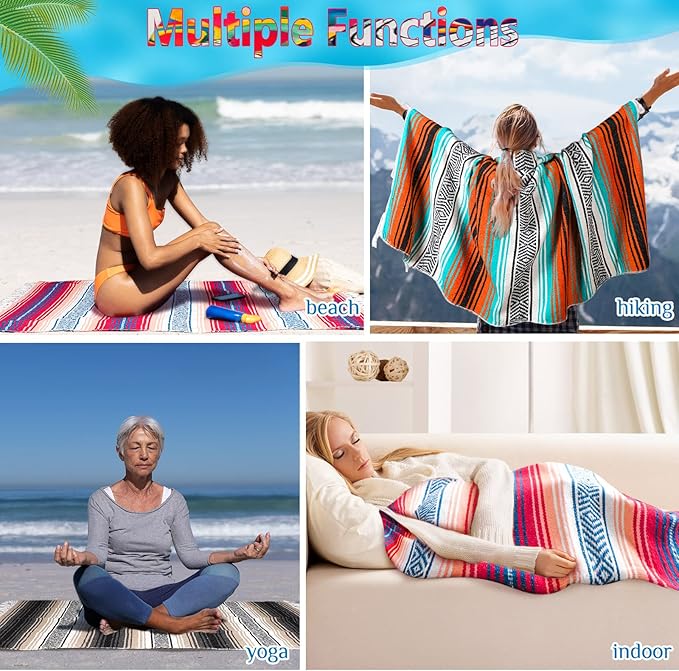 - Attractive Color: Mexican serape blankets are designed with a fringed edge and bright colors create beautiful spaces and add style, vibrant and beautiful colors that add joy and comfort to your journey wherever you go