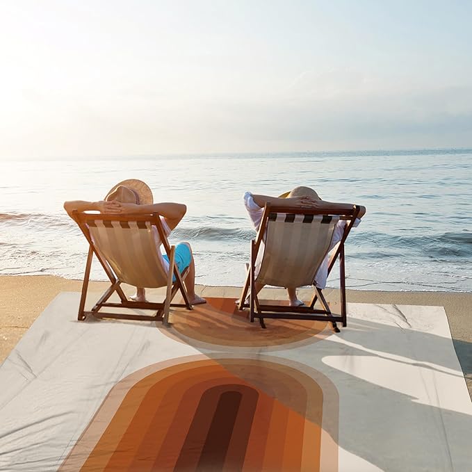 - Generous Size : Whether you’re looking for a super-sized beach blanket to fit the whole family or a luxurious piece to show off your style, BEW boho rainbow beach mat for your needs. 110" x 118" large beach blanket offering a huge surface area for you to make the most of your sun-soaked plans.