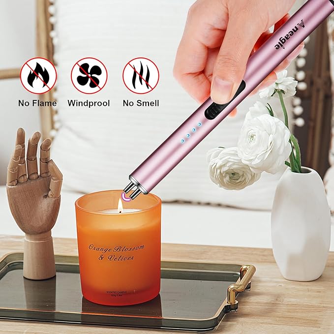 Electric Candle Lighter Upgraded USB Type-C Rechargeable Candle Lighter Windproof Flameless Plasma and LED Battery Display Arc Safety Candle Lighter for Candle Grill Camping