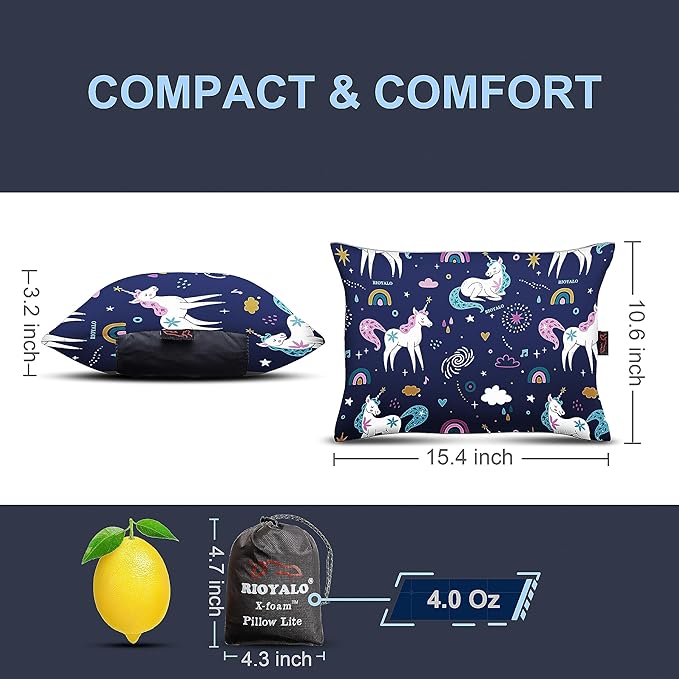 - [ SMALL & ULTRALIGHT ] Weight only 4.0 Oz, with the compact Lemon-sized compressible pack, RIOYALO x-form kids pillow is the best combination of packable space, comfort and weight. Ideas for travel airplane, camping, backpacking, backyard campouts, and girls scouts