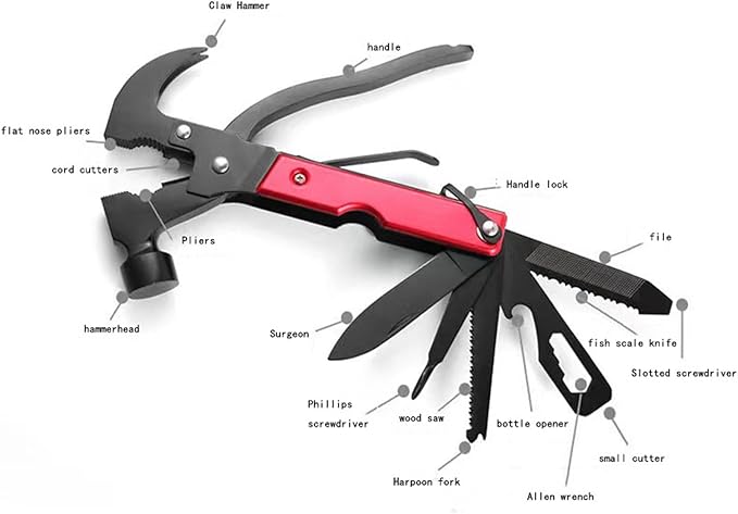 Multi Tool 16 in 1 Hammer Portable Gadgets Camping Gear Survival Tool,Birthday Christmas Gift for Men Boys,Hiking Outdoor、Window Breaking