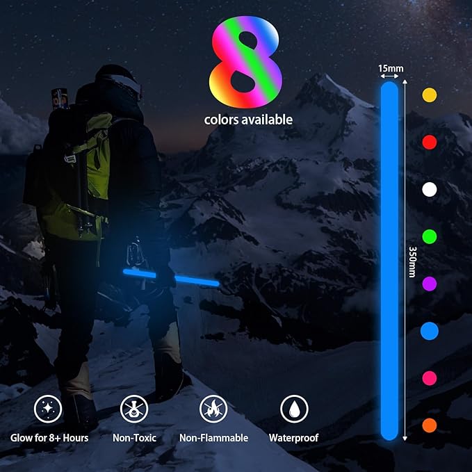 • 【Emergency Lighting Function】Our big glow sticks are military grade bright light sticks,mainly applied for emergency situation.They will provide efficient and reliable lights in power outage,natural disasters(like earthquake,hurricane),or other unexpected situations where electricity may not be available.These light up sticks also are good partners for camping bags, suitable for diving,exploration,camping, night riding, fishing, hiking, field and so on