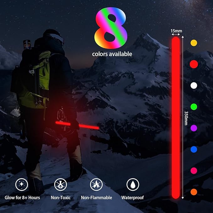 • 【Emergency Lighting Function】Our big glow sticks are military grade bright light sticks,mainly applied for emergency situation.They will provide efficient and reliable lights in power outage,natural disasters(like earthquake,hurricane),or other unexpected situations where electricity may not be available.These light up sticks also are good partners for camping bags, suitable for diving,exploration,camping, night riding, fishing, hiking, field and so on
