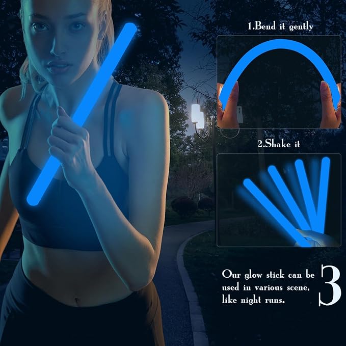 - 【Easy to Use】Gently bend the sticks and shake it firstly,and waiting for the liquid to mix evenly,then these glow sticks will be super bright.Pls be careful and do not bend the stick excessively to avoid liquid leakage.Our giant glow sticks are sturdy,lightweight,proper size allows you to put them in backpacks,handbags, or luggage, ideal for daily using and travelling