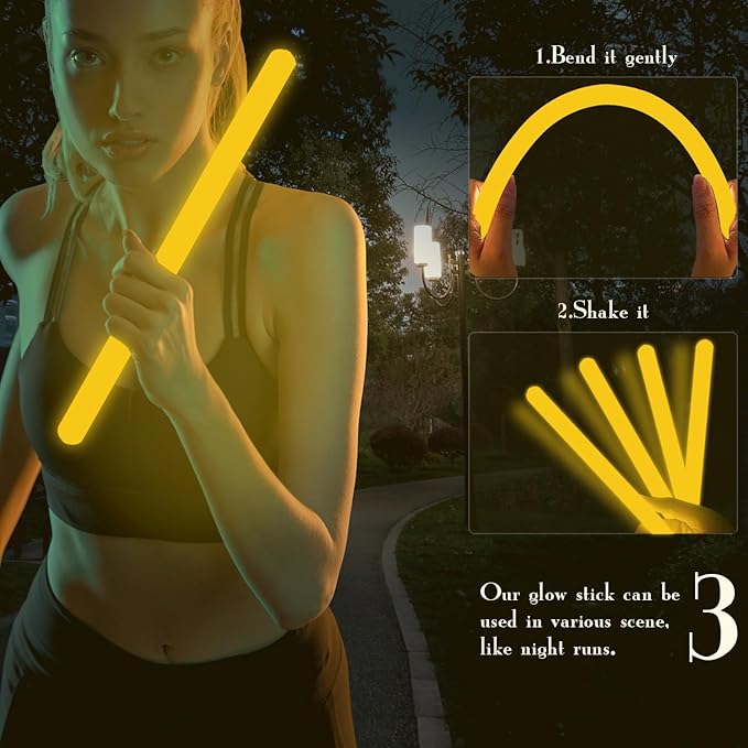 - 【Easy to Use】Gently bend the sticks and shake it firstly,and waiting for the liquid to mix evenly,then these glow sticks will be super bright.Pls be careful and do not bend the stick excessively to avoid liquid leakage.Our giant glow sticks are sturdy,lightweight,proper size allows you to put them in backpacks,handbags, or luggage, ideal for daily using and travelling