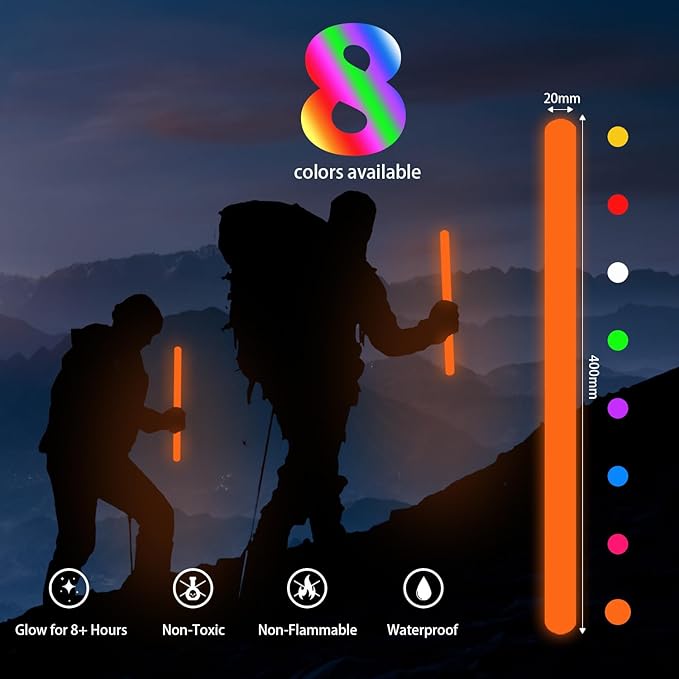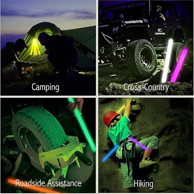 • 【Emergency Lighting Function】Our big glow sticks are military grade bright light sticks,mainly applied for emergency situation.They will provide efficient and reliable lights in power outage,natural disasters(like earthquake,hurricane),or other unexpected situations where electricity may not be available.These light up sticks also are good partners for camping bags, suitable for diving,exploration,camping, night riding, fishing, hiking, field and so on